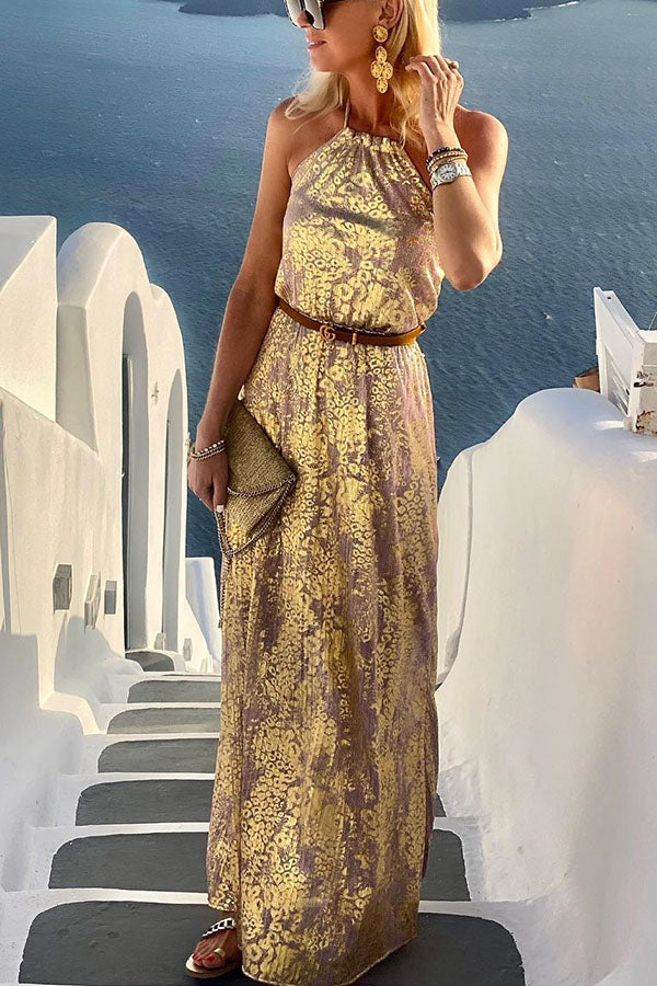 Diane Gold Leopard Print Halter Maxi Dress